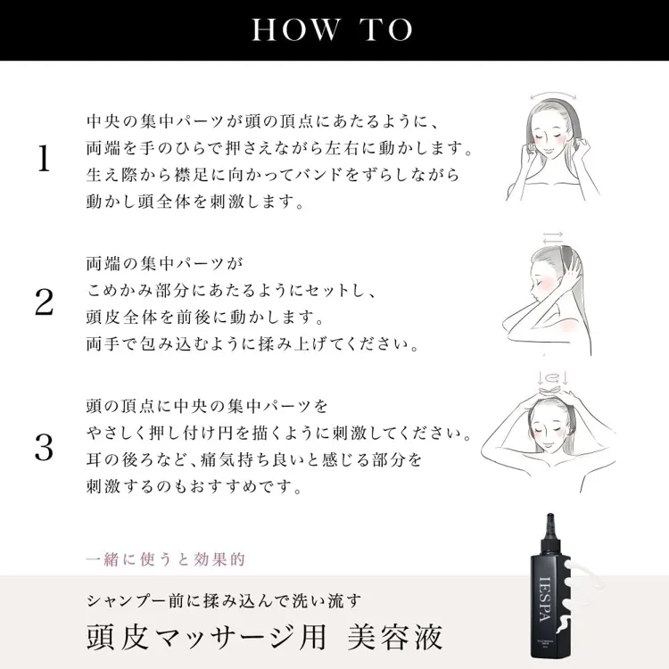 ヘッドスパサロンで用いられるハンドテクニックの"フォーフィンガースパイラル"を再現しており、自宅にいながらサロン級のヘッドスパを実感できます◎