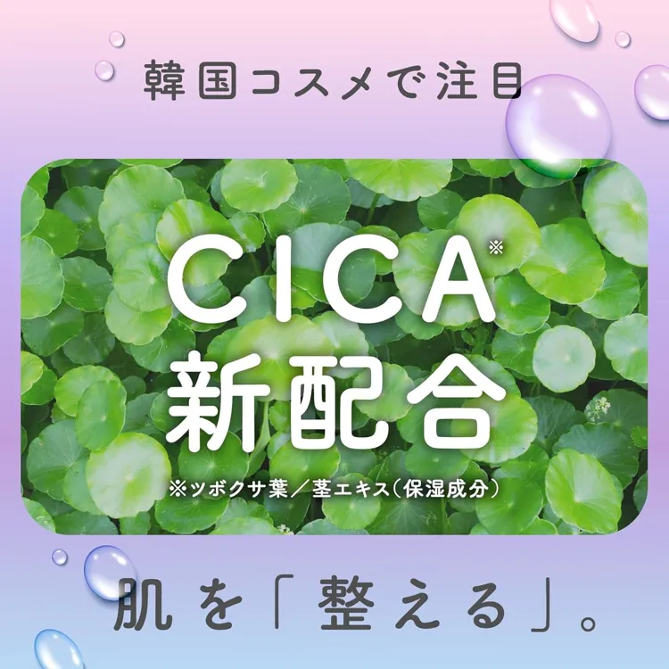 | 全成分 | 水、グリセリン、PEG-60水添ヒマシ油、酸化チタン、エタノール、ポリソルベート20、香料、ポリクオタニウム-10(うるおいベール成分)、ツボクサ葉/茎エキス(CICAエキス)、シア脂油、グルコシルセラミド、α-グルカン、BG、メチルパラベン、プロピルパラベン、フェノキシエタノール、PEG/PPG-300/55コポリマー、PEG400、ステアロイルグルタミン酸Na、リン酸Na、リン酸2Na、塩化Na、トコフェロール |